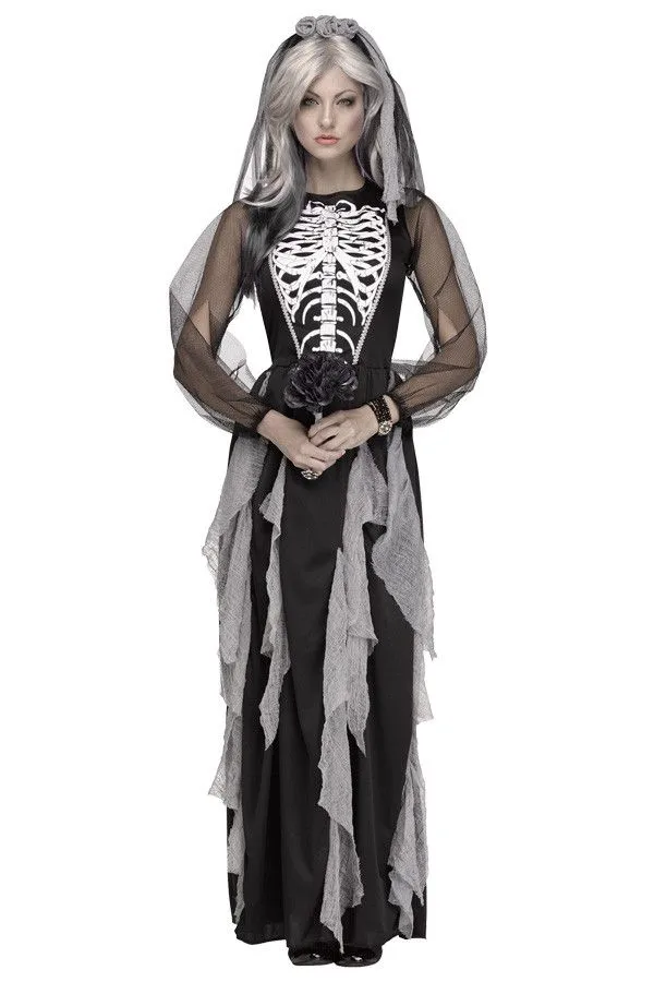 Elegante Skelet Bruid Vrouw Kostuum