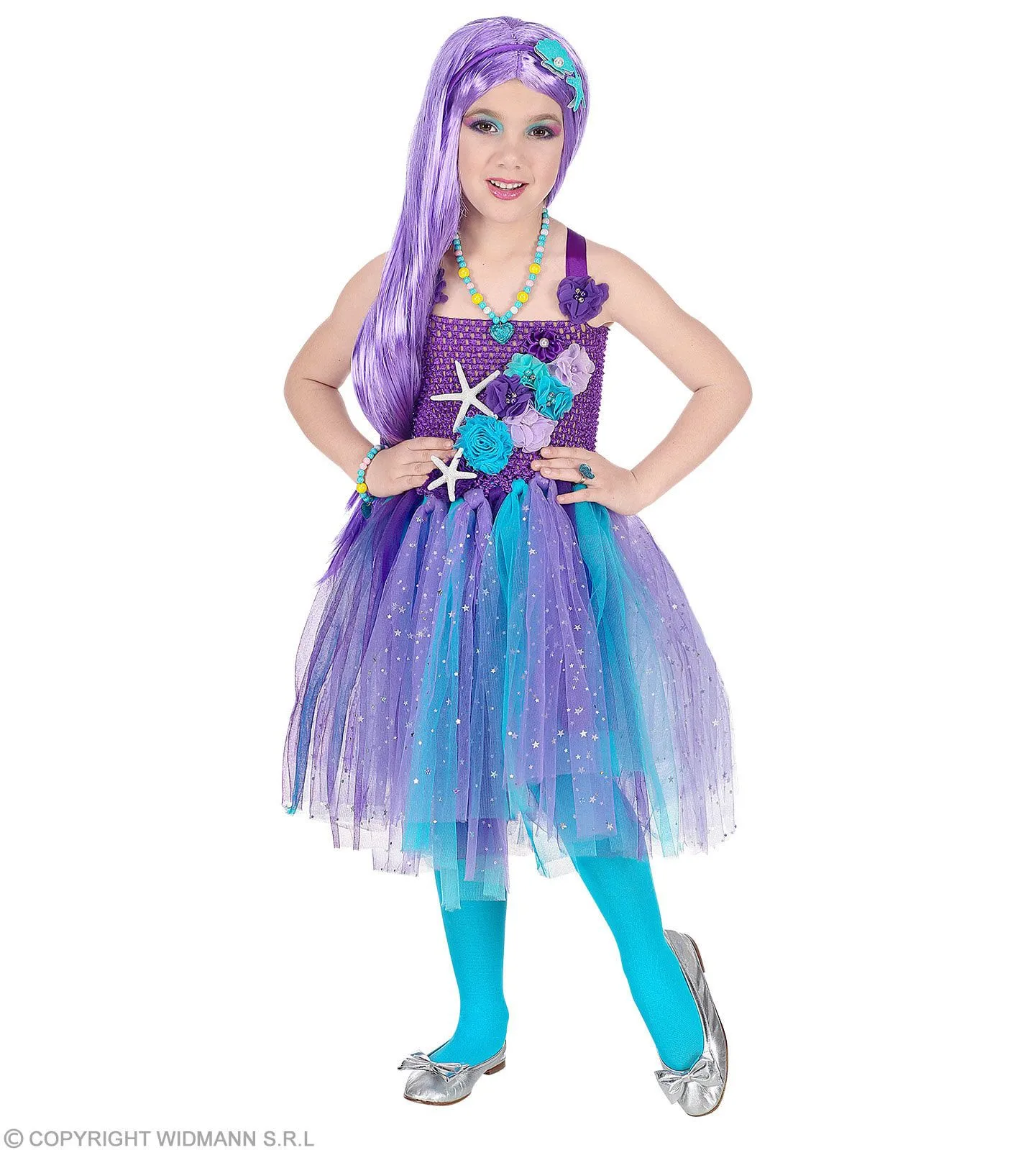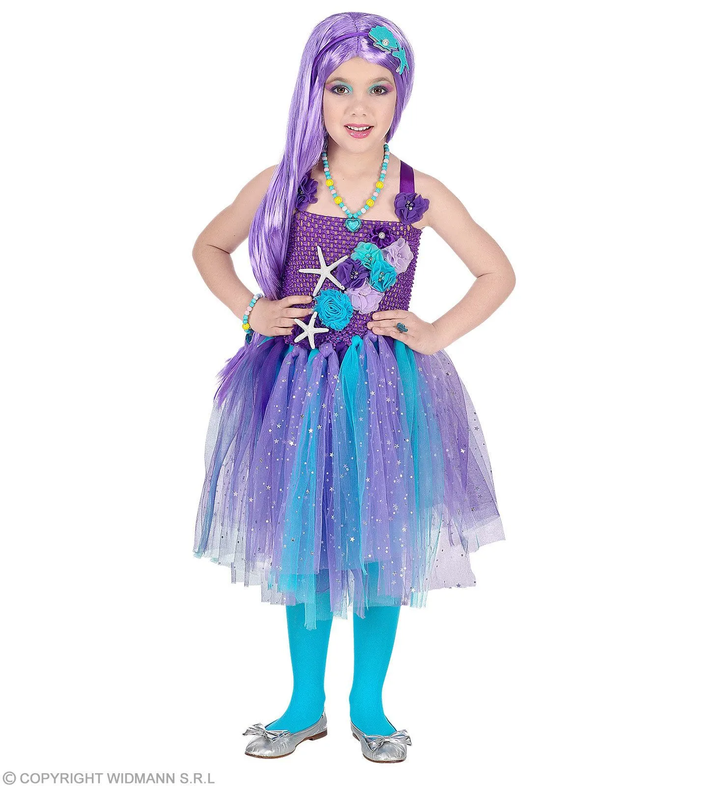 Kleine Zeemeermin Versierd Met Schelpen En Bloemen Meisje Kostuum